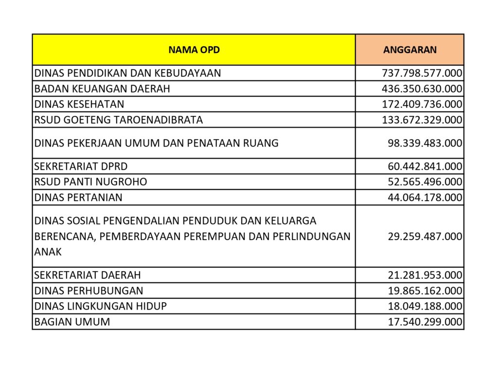 InformasiAPBD TA 2026 Rony Adji8 bulan ago1 minggu ago21 mins UPDATE … RAPBD 30092025 Anggaran Rp. 2.182.578.197.000dengan Rincian sebagai berikut : Post Views : 68,109 Navigasi pos Previous: Forever And OneNext: PAD 2011 sd Sekarang 2 thoughts on “APBD TA 2026” 👍👍👍💪💪💪 Balas untuk kenang kenangan Mas … sebagai Jejak Digital Balas Tinggalkan Balasan Batalkan balasanAlamat email Anda tidak akan dipublikasikan. Ruas yang wajib ditandai *Komentar * Nama * Email * Situs Web Simpan nama, email, dan situs web saya pada peramban ini untuk komentar saya berikutnya. Δ